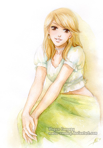 Aw the colors are so wonderful! So bright <3 I really love it! I Love the way you've done the hair. And her face expression is so cute