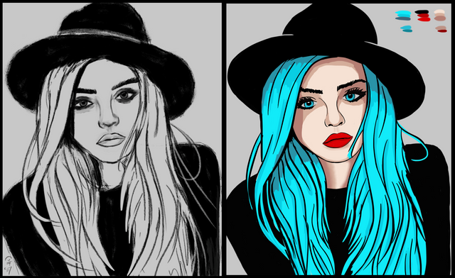 #beautifulgirl #blackhat #blue #blueeyedgirl #blueeyes #bluehaired #digitaldrawing #femaleportrait #flatcolors #hat #lineart #lipstick #pale #portrait #prettygirl #redlipstick #workinprogress #girlwithhat #kritaartwork #bluehairedgirlhair #portraitbeauty #paleskinnedgirl #paleskinbeauty