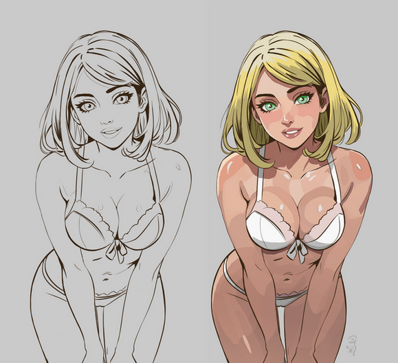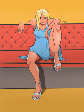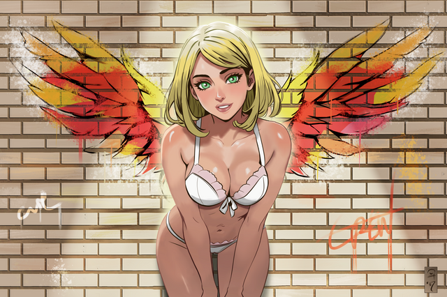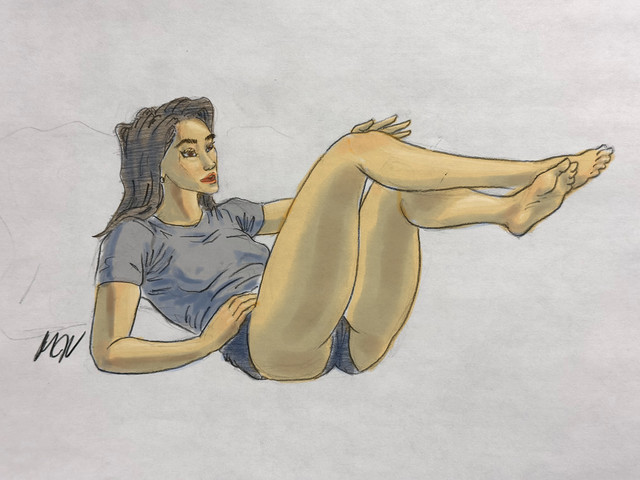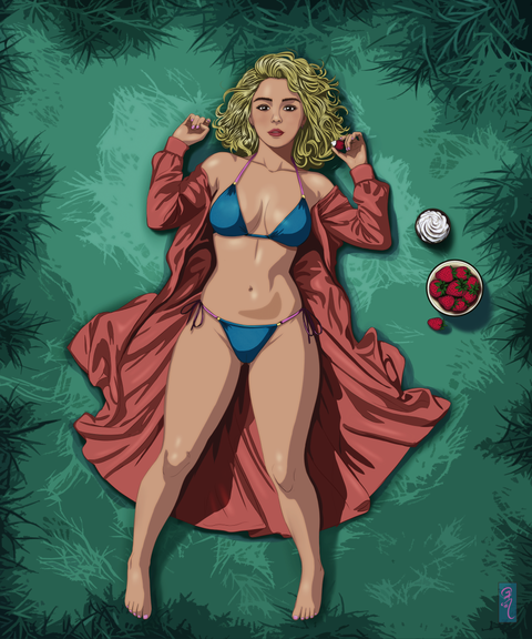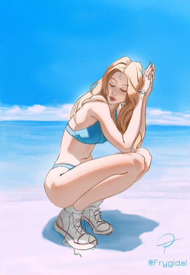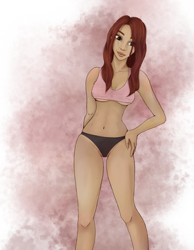 #athletic #barefeet #blondegirl #blueyes #croptop #cute #digitalart #digitalpainting #female #illustration #krita #panties #pinup #posing #sexy #smallbreasts #layingonside #spreadinglegs