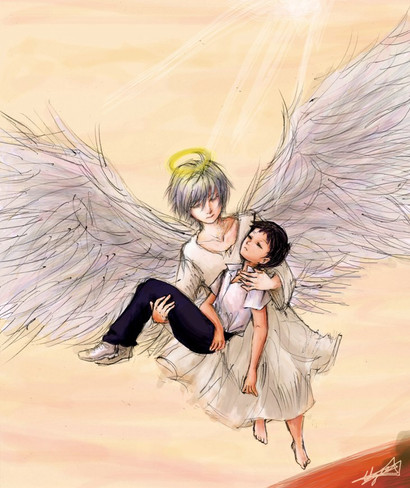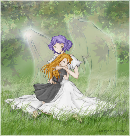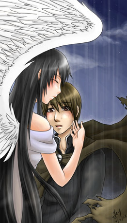 I loved Haibane Renmei, but god, the ending was so sad... ;_; This captures Reki and Rakka's relationship perfectly to me, though... I hope they meet again beyond the wall. T_T