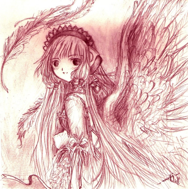 this... is Horrible. and has such an original title. *dripping with sarcasm* really it was just a 10 minute doodle that i liked and therefore inked and colored. but... i think i liked the sketch a lot better. T-T;completely not worthy of such a wonderful character. Reki, from Haibane Renmei, because i just finished the series today and felt like I should draw something for it. (even though the getting-to-be-extensive list of fanarts i've planned to do did *not* include Haibane.)