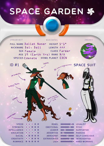 RP sample: (Copied from Daliat’s ref) Daliat stared up at the ship before her, it wasn’t just large, it was massive. She had been accustomed to space craft in books and photos, but she had never determined nor imagined just how large of scale these ships could be physically sitting before her. The Edenate glanced around at other crew members re-boarding the ship, shifting their eyes on the short newbie. She took a deep breath, taking one look back at the lush green surroundings, soaking in the last of her home’s sweet sunlight, and adjusted the large bag slung over her shoulder with what belongings she had. She stepped aboard the ramp that ran steeply to the ship’s entrance, ready to enter this new chapter in her life.
