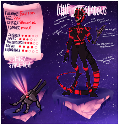 History: Epsilon worked in Shealvolkai’s moon-based space station as a technician in charge of developing a new AI program for military purposes. He grew up with a fairly normal life until his teens when his sister passed away and he left to study at a university in another division. Because of his odd facial markings including a mix of stripe and ringnose, he suffered a lot of prejudices trying to get through school. He had to work twice as hard, and during the process he developed a pretty dense personality to protect himself emotionally.