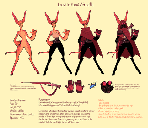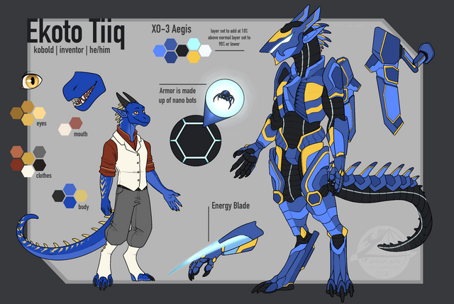 Strengths: Definitely smart, maybe his only redeeming quality. He’s good at building and fixing things fast. When he does have to engage in physical combat, his tail is his primary weapon as it is large and blunt but otherwise he must use wits.