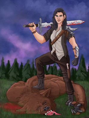 Anyways, I've been playing a lot of Skyrim lately for a second runthrough since I've gotten it for the PC now, and I keep doodling my Redguard character (the chick being birthed out of a fuckin werewolf carcass) a lot giving her a back story n shit (right now she is an ex werewolf, now a dark brotherhood assassin heuehhue) So this is just like... idk, you can come up with the story here, I tried to give it a lot of context and follow the whole "show don't tell" thing.