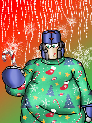 I was your Secret Santa this year and used the opportunity to put Metal Man in an ugly christmas sweater. Too bad it wasn't the best combination with his, well. Literal saws. And who do you think he plans to share the E Tank with? Questions over questions...