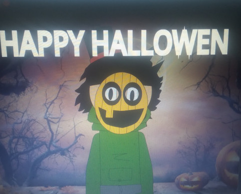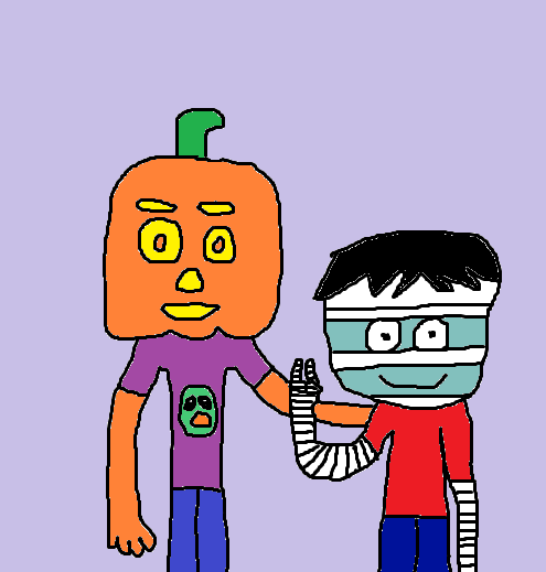the idea of halloween is using a jack o lanturn for a head and im using my power to float my head and saying "happy halloween" so basicly i used a headless horseman style of artRelated content