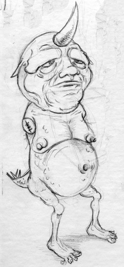 This is a redesign of the Hobyahs. The story is about little girl thieving salamander men that always looked too cute and cuddly for my tastes.I wanted to make them seem as it they had a devious intellegence to them. I think it came out okay.
