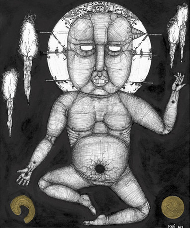 a galactic remix...turning back the tables of time!charcoal drawing and adobe photoshop