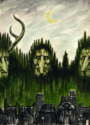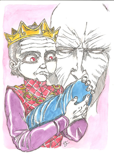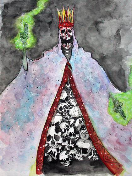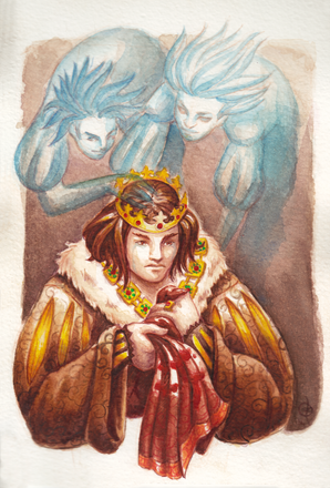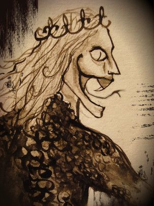 This is poster I did for the play King Lear.In it an old king divides his kingdom between his three daughters, two of which turn on him and cast him into the wilderness.