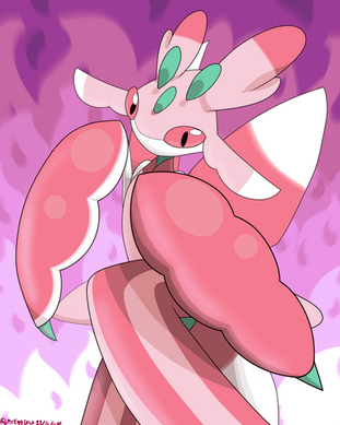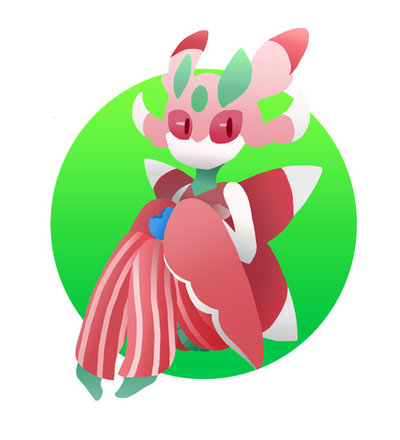 I absolutely adore this piece of art! It is really cute, I adore the pose Lurantis is in and the flowers and petals in the background work really well with Lunrantis. Great job!
