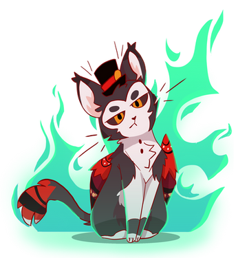 "Would you like to join Black Cat Orga-..uhm.. i mean Black HAT Organization⁉️"Colored pencil sketch of black hat as a cat! As a very evil and demonic cat ofc