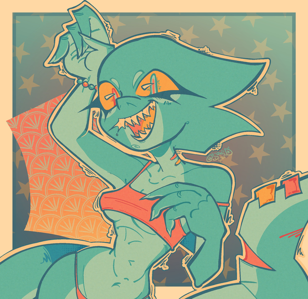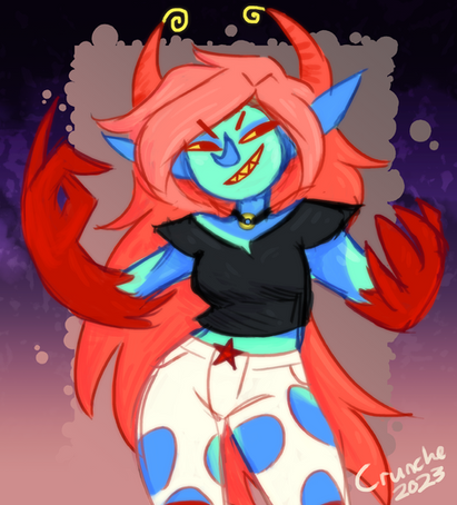 also I had a more exaggerated style for her, back then i was wondering if shark like demons live in the Helluva Universe too but due to HelluvaBoss you could sea some see like creatures back in Episode 7 and i im quite happy!