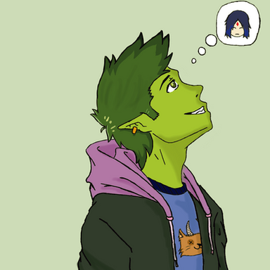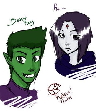 beast boy with ravens powers and outfitdrawn on the 8th of sptember.