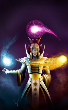 Oh I like how you can see the lightning/magic inside him. It's almost like veins in an actual person. Tres cool! And I like the angular clothing. Is this character a sorcerer?