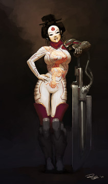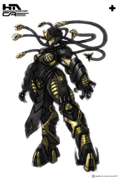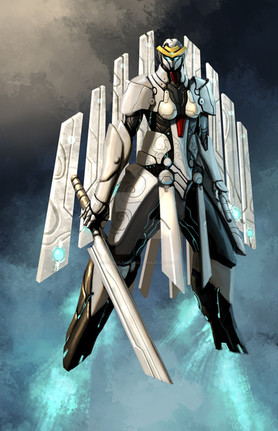 I really love this one dude, the face and body gives for excellent contrasts, seen this kinda thing done before but i like how you did yours. Nice how your designs look like a mix of medieval/traditional elements with a futuristic twist.