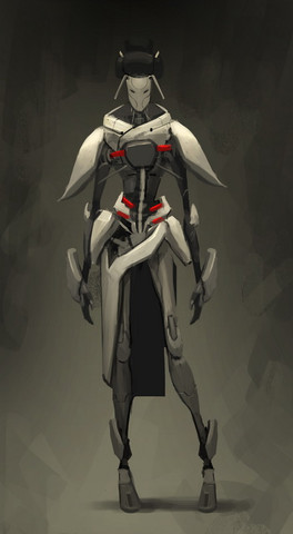 I love the contrast between the delicate looking mask and the her harder looking mechanical body.