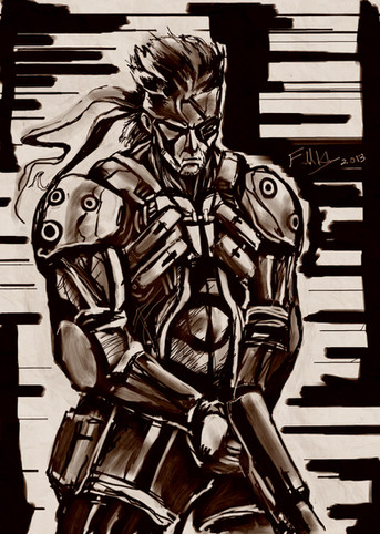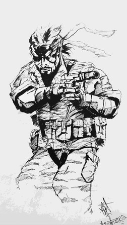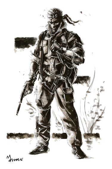 awesome work. your style is really cool, it fits the Metal Gear feel very well. I love the pose on him, and the gun is really cool