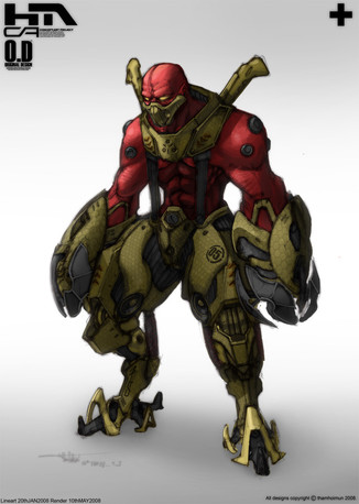 The design is really good though. I like the creature. I can still see your trademark leg design in your organic and mech pieces. That's not a criticism. It's a good design. I've gotten used to seeing that design enough now that I could probably look at a piece and, if it didn't have your unique line art to help define it, I could probably pick you out as the artist just from the legs.