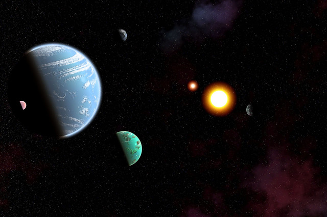 That's beautiful, the colours are so forbolding and add some mystery to the middle planet. Very nice.