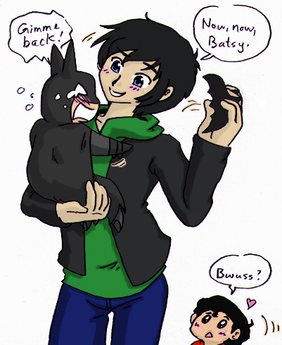 That's a good question... I really haven't had a chance to develop more ideas for Terry, other than Damian is his mentor, and he and Irey are kind of like his parents since it's my headcanon Irey can't have kids (I have no idea what would've happened to his parents or if they're still around or something). I know I'll think about it eventually (especially now that you asked), but at the moment, I did like Dana in Batman Beyond. Well, on and off (there are times I like 10 better). But I really liked her in the "Epilogue" episode of Justice League, because I like it when non-superhero romantic interests don't buy into the whole "it's for your safety we're not together" crap. So I guess we'll see? Though I'm easily influenced so if people had suggestions, I may take them into account.
