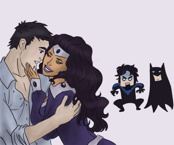 Haha, I imagine that at first Jai is kinda like, "Ew dude, that's my sister," because in my head canon, he, Damian and Colin are bffs, but when he finds out that Irey likes Damian too, he actually helps get them together. Then, he gets all protective, because they are twins, and I can imagine them very close, so even though he can't really do much, he basically threatens Damian, typical, "You hurt her, you die" kind of thing (seriously, I think his threats would be worse than Wally's). And Damian, being his best friend knows how serious he is (I mean, you'd have to be if you threaten an ex-assassin who's dad is Batman), and assures him that he takes their relationship seriously.