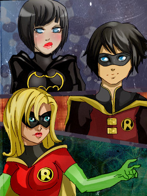 Oh, and I did want to say some things on this pic. I like how Steph's hips are wider in comparison to Cassandra's, I think most people tend to forget she did give birth. I also like the skin tones, especially Damian, and how most of them are blushing, except Cerdian, who looks bored. I also like how the costumes have the necessary equipment and details that they should have.