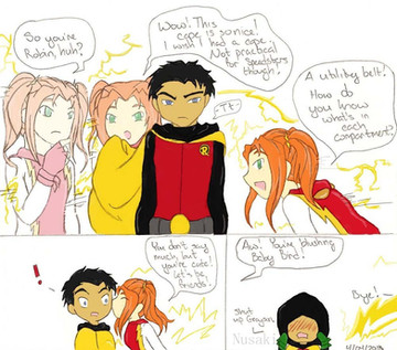 Jai: Dude! Batgirl is TOTALLY HOT!!Damian: -TT- Fatgirl? You need your eyes checked, Jai.