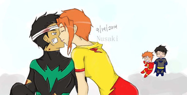 Anyway, just a silly little idea I had with the boys of the New Generation Teen Titans. They'd be around 13-14ish in this picture so they're just starting to notice girls and which ones appeal to them. Knowing me, of course there's DamianxIrey and CerdianxLian in there.