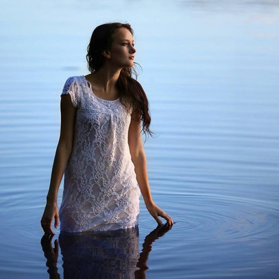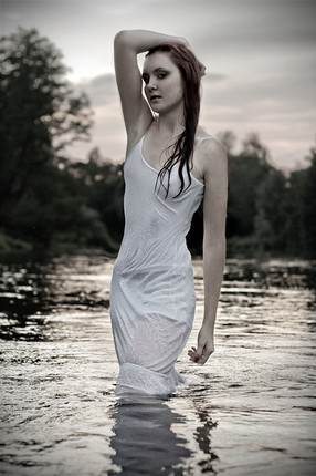 wow. this is a beautiful picture. I just love the water and the way it's soaked her dress and hair. the expression is also lovely.