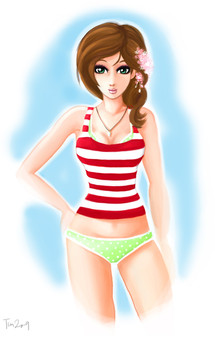 I draw out a quick sketch, and scan that in. Then I trace the lineart using my drawing tablet, and then color in layers underneath it.