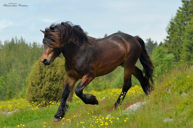 Norwegian Dole horse stallion, released in the mountians to spend the summer with his maresRelated content