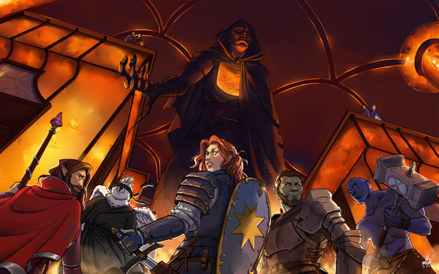 Hi everyone!Here's my latest artwork: a fantasy art commission with a very interesting cast of characters, all linked to their mysterious enemy...