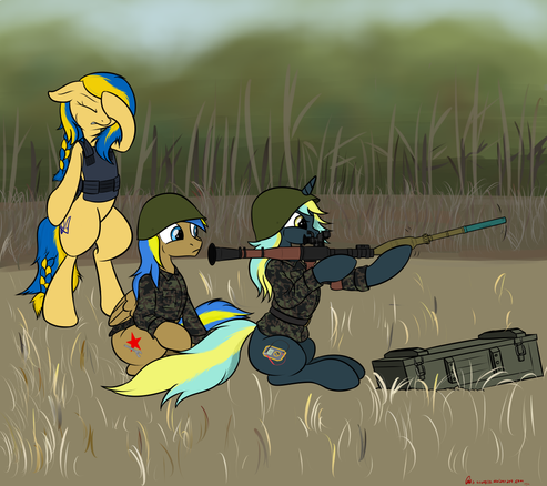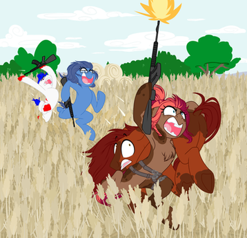 And even the most muscular anthro pony mare can be taken down from a distance by one simple bullet in one critical place.