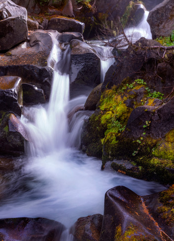 after 1.5 miles and 2000 feet of elevation gain of misty fog and wildflowers blooming..i arrived to this spot.unfortunately i took too many pictures of wildflowers and the sun had just crested the hills..blasting the main drop with harshness. decided to make the trek up to Van Trump Park above the falls to look out from the top. well the snow covered and hid the trail probably..50 yards from the falls! did make it too the top..making my own path. and wow..what a gorgeous area..and all to myselfby the time i had made it to the top of the falls..the clouds had made there way up the mountain and totally obstructed the views :/ did stand on the rim and could see the river after the drop but vertigo set in and decided to step back just a tad.