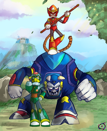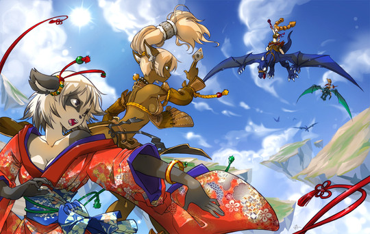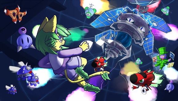 Reminds me of those Mega Man Legends pieces with everyone in the air within controlled chaos!