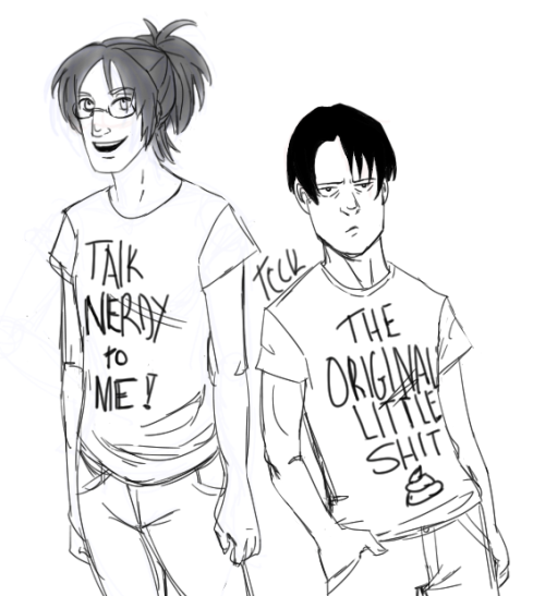 Shingeki! Kyojin Chuugakkou premiere is in a couple days and I wanted to draw Levi and Hange with some silly shirts ( x x )You can also check it on my tumblr