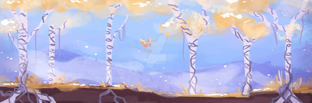 The stylization of the trees and color choice are very beautiful and moody.