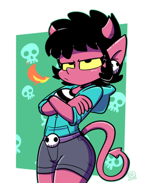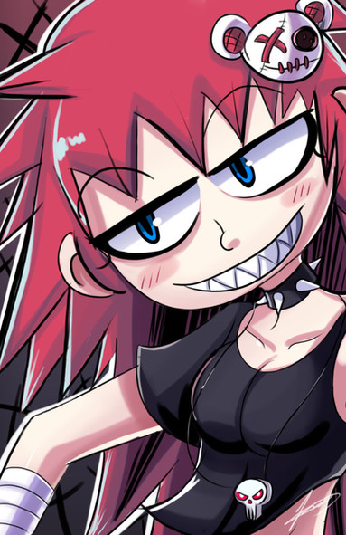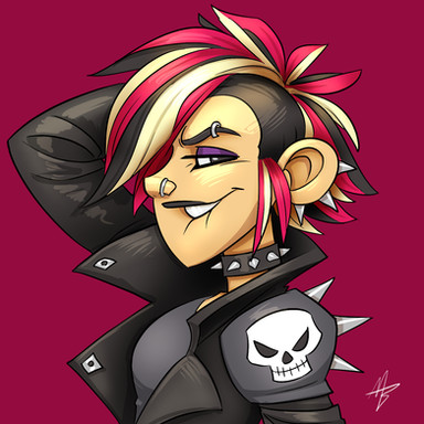 A punk character I came up with last year. Shes a resurrected ghoul, who plays in a band of zombies and feeds on pop idols.....Yea I have a tendency to draw crazy demon people when I'm bored