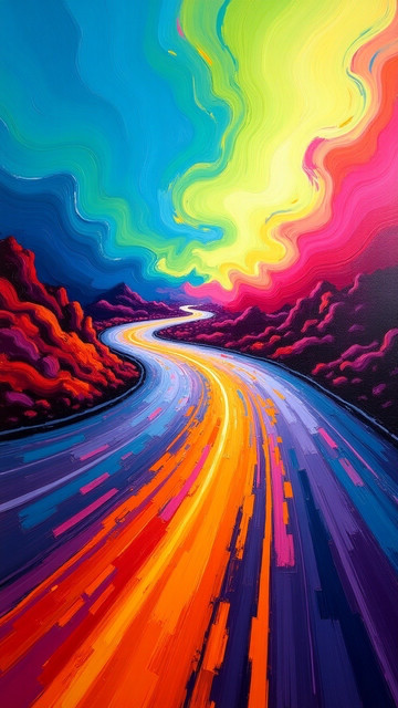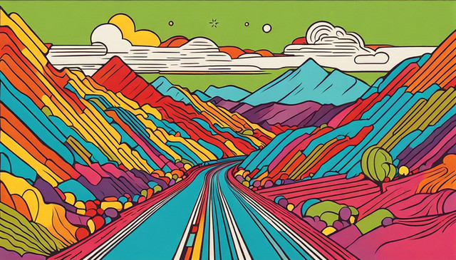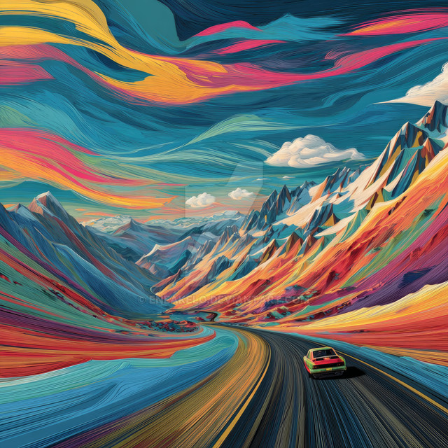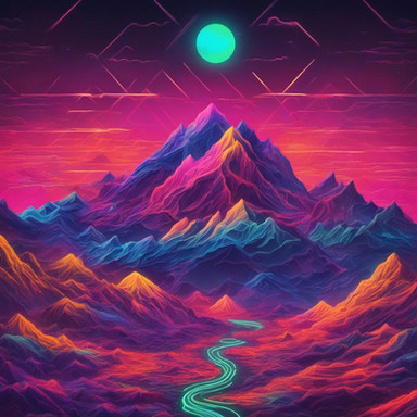 #clearsky #drawingillustration #moon #mountains #neoncolors #polygons #retrostyle #road #ai_artwork