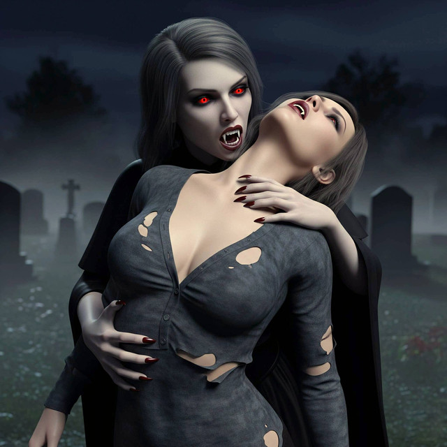 The vamouress licked the wound and her bloody teeth and replied with a smirk "I'm having you for dinner, my little blood can. Be a good girl and perhaps I'll let you go when my belly will be full of your tasty blood......because I have another vampire friends who should taste you too, you're just too delicious to let you go. Now be a good dinner and hold still..."