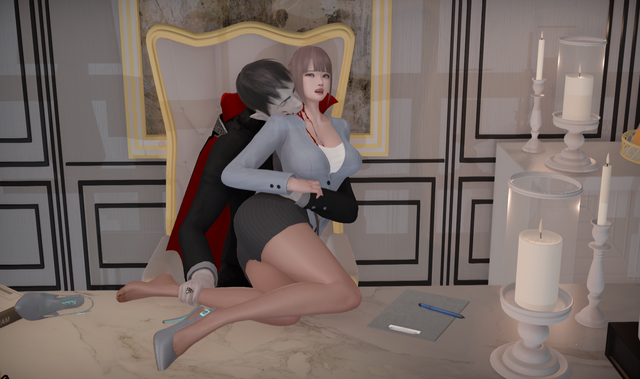 The noble vampiress was sipping her coffee in a first class luxury flight, while her stomach started growling after something more juicy. Special stewardess, trained to satisfy all unique needs of top clients, had no experience with this lady yet, so she walked towards her nervously, with caring face "Would you like to have something for dinner, lady?". The vampiress looked at her hungrily at bit her lip seductively "Oh I would, I'd like to have YOU for dinner my dear". "P-pardon? excuse me? I didn't hear you properly.." but was interrupted when ravenous vampire quickly stated "You heard me very well, food. Now take of that silly skirt, I want to see what tasty morsel hides beneath it."Β