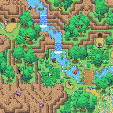i stumbled across a bunch of custom pokemon maps made by people and i thought "omg that's so cool i wanna try" so i did. the first who i saw do it was AbsborTheCat on here do it (i saw it thru their pokeheroes signature which is *MuddyUnicorn* ), and the other person who inspired it was PeekyChew who's maps i thought were super cool.tileset credit to ChaoticCherryCake here