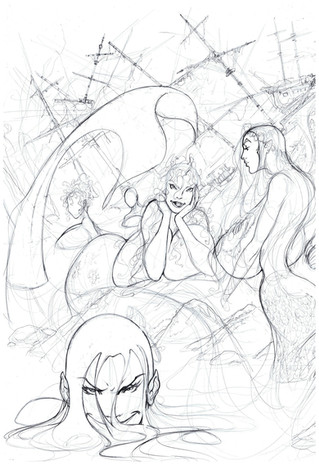 Superb coloring work!Β Β The background really adds a wonderful level of menace/beauty to the image that fits with the mermaids.Β