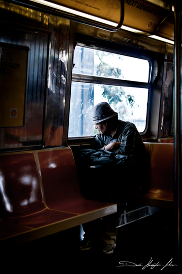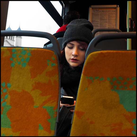 Photo taken with a little camera on my Sony Ericsson K750i mobile phone, while traveling on the subway.
