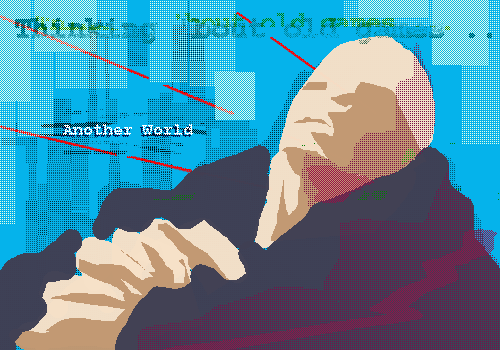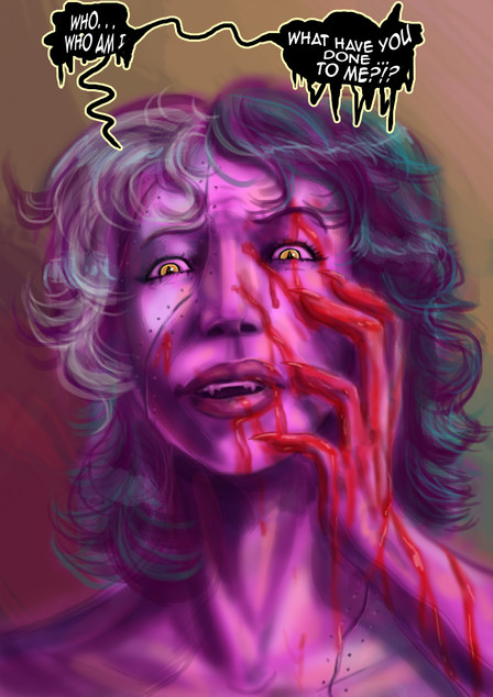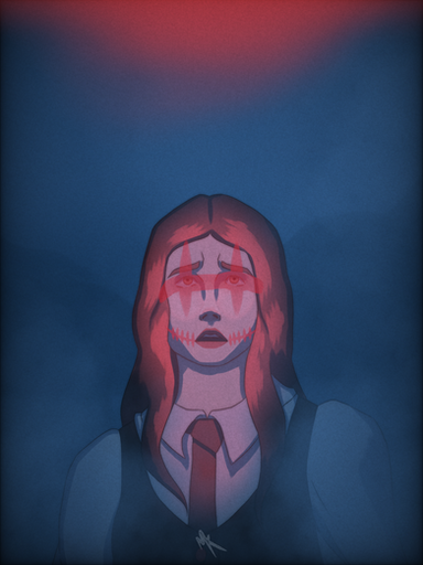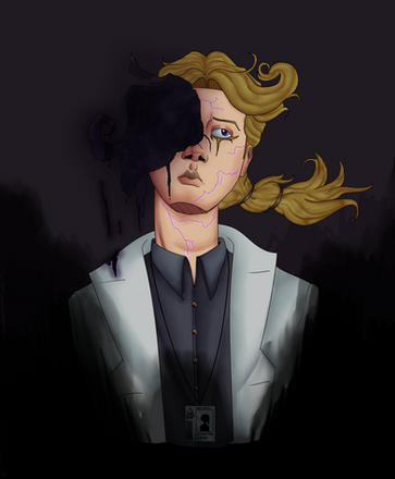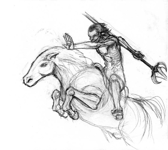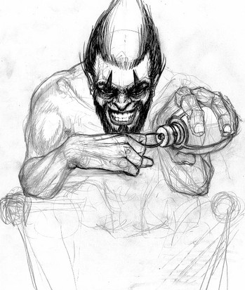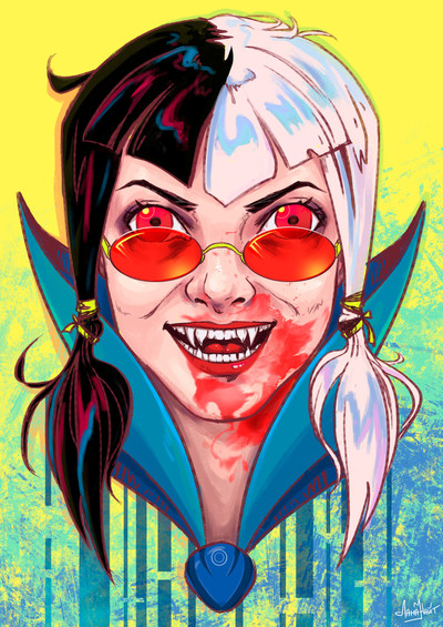 An excellent use of background form and shape to offeset the character. Whether intended or not, the black gives an impression of furling wings, and the white? Perhaps the spade of a demonic tail. Who's to know?
