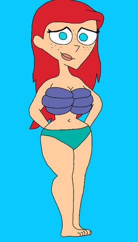 Features: water green kalda, with shades of navy blue, depending on the reflection of the solar lights, which falls apart whenever it is totally dry, violet shell bra, bright red red hair that goes to the back, extremely large breasts and hips, light blue eyes lighter than the more crystal clear water and freckles, and mainly an hourglass silhouette and guitar body.