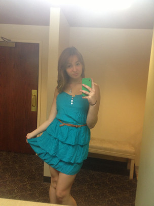 Your friend looks adorable. You can tell she's embarrassed though.