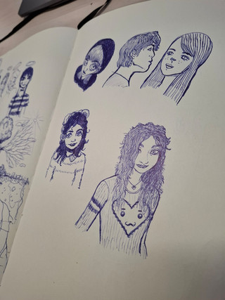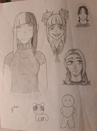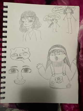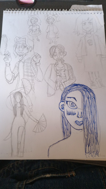I’ve been working on a few projects for a while now, a couple things really, but first thing’s first; I have a spoOoky comic in the works. I really want to be able to make something and finish it, finally bring an idea to fruition, so with this I decided to mish-mash a bunch of ideas and memories and dreams I’ve had together to create something hopefully fun and unique, plus I’ve been trying to find a way to create more efficiently and it’s producing some cool results, I don’t have much to show for that aside from these sketches I did while coming up with the characters. They all have funky names like Chapstick, Toothpaste, Hotsauce, I always hate having to come up with serious names for characters so I decided to simply embrace chaos and give them silly names that make no sense. My cat is a character, she’s the pink cat at the bottom, redrawing the memories I have with her has been a real comfort, I’m able to express her personality so that you can all have the chance to meet her even if she’s not around anymore to introduce herself.