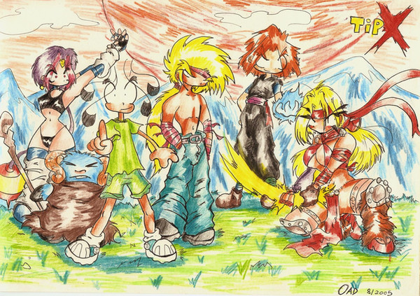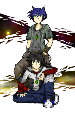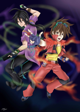 My 2 chars Tip and Bit, great friends but they have opposite personalities. Tip is good, weak, shy, friendly and Bit is mean, brave and strong. I used this picture [link] by for the Tip´s power.